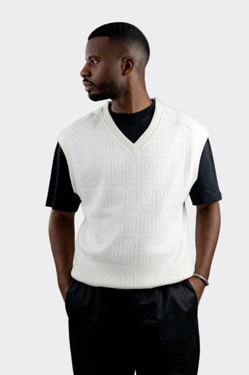 The Two-Textured Vest is a product of design ambition, innovation, and limitations. Originally planned as a fully knitted piece, local constraints in Palestine forced us to find alternative solutions. After multiple trials, we combined a patterned knit with ribbed cotton, creating a distinctive, two-textured design.
